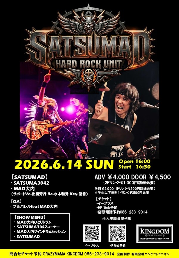 6/14に岡山のCRAZYMAMA KINGDOMにて炸裂させていただきます(*´ω`*)