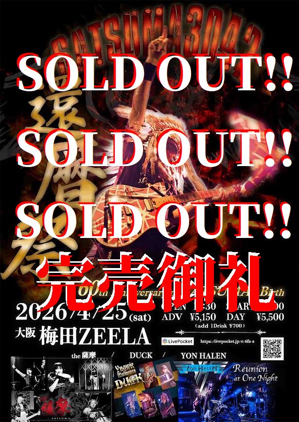 さぁ!目の前に迫ったSATSUMA3042還暦祭!皆様のおかげでソールドアウトすることができました。